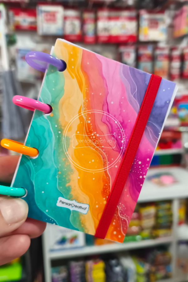 Cuaderno A7 Personalizado con tapas flexibles plastificadas y discos para sistema inteligente.